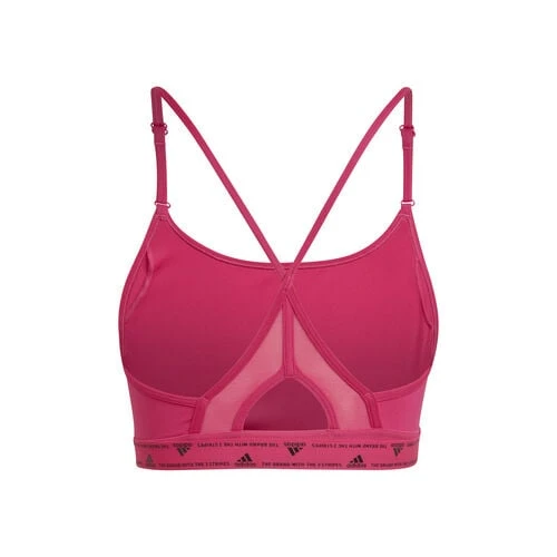 Turn up the intensity. This adidas light-support bra keeps you feeling good with breathable mesh details and moisture-absorbing AEROREADY. The thin straps are adjustable from the front, a small detail you’ll appreciate during crunches or bench work.