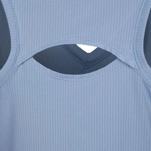 - Applied logo, Mesh tissue, Racer back, Reflective logo, Back cut-out, V-neck, Decorative stitching