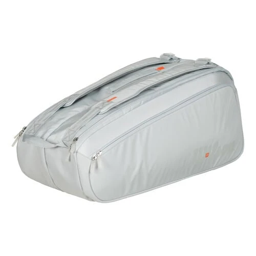 With the Shift Super Tour racket bag from Wilson you are well equipped for every practice and every match. It comfortably holds up to nine rackets, while still allowing you to easily store accessories such as balls and grip tapes or personal items. Reinforced side inserts increase durability, while the Thermoguard lining protects your rackets from extreme temperature fluctuations. The padded shoulder strap is easily adjustable and features two carrying straps for even more comfort.